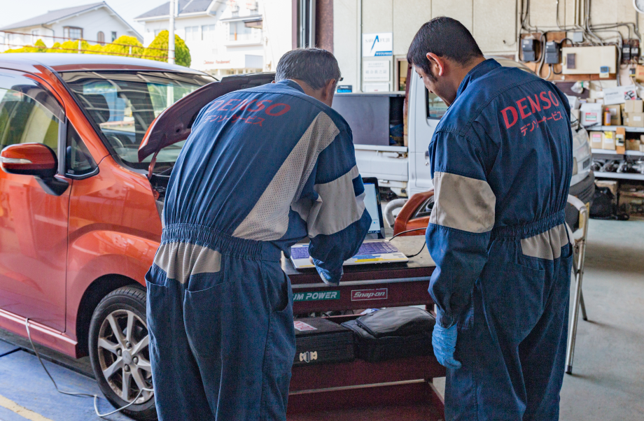 デンソーサービスステーションの一員として全国の仲間と連携し、最新の技術研修や資格取得を通じて、進化する自動車の高度なシステムにも対応しています。