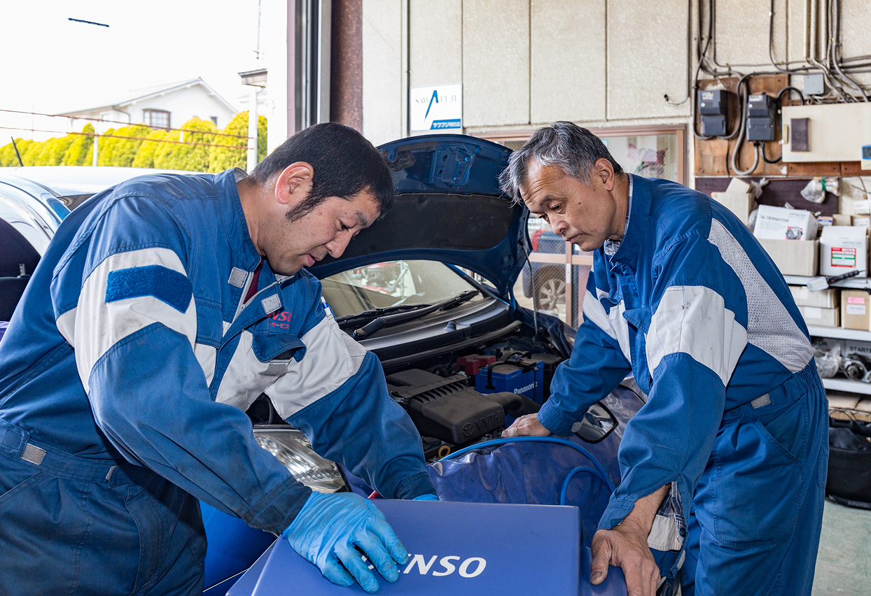 デンソーサービスステーションの一員として全国の仲間と連携し、最新の技術研修や資格取得を通じて、進化する自動車の高度なシステムにも対応しています。
